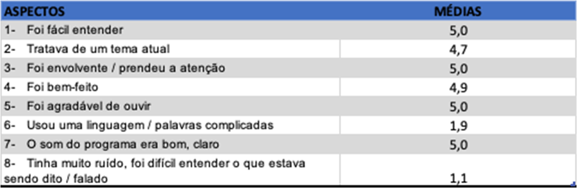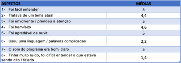 Cada participante ouviu, em média, 3 episódios de cada programa